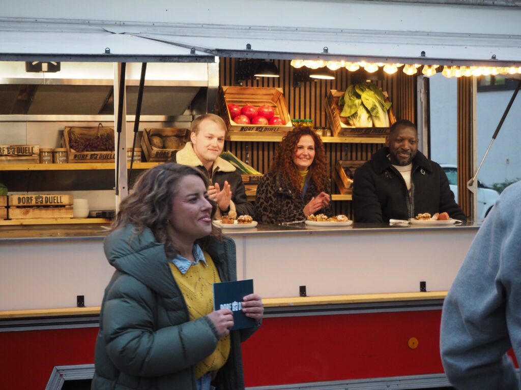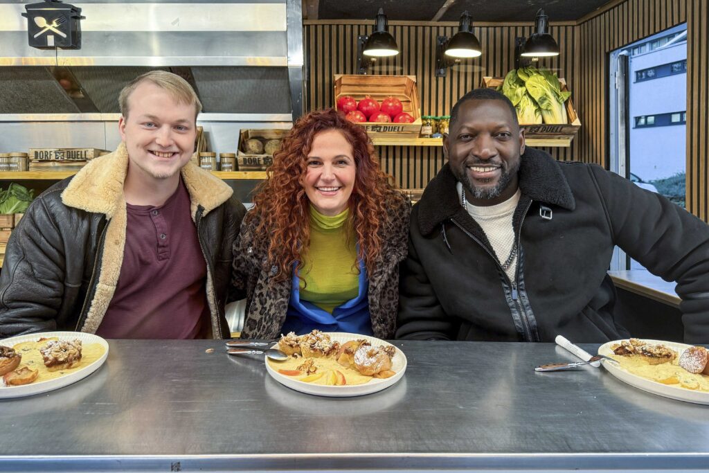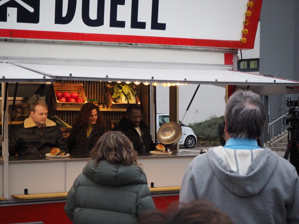 Um 9 Uhr begann die Aufzeichnung mit einer Anmoderation der gut gelaunten Moderatorin Simin Sadeyhi. Sie stellte die Fachjury vor: der Streetfood-Award-Gewinner Bubacarr Sissoho, «The Taste»-Gewinnerin Yvonne Fries und Dennis Schneider (Jungkoch des Jahres 2024). Anschließend wurden die Köche begrüßt und befragt sowie die zahlreich erschienenen Bürger interviewt.