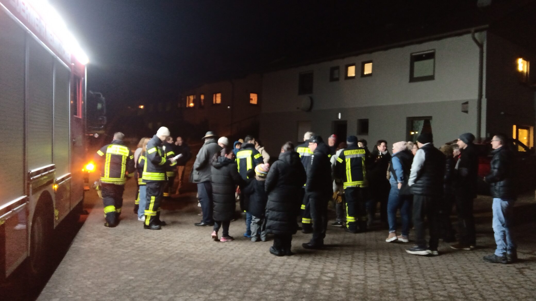 Nach Ankunft der Feuerwehrwagen wurden die Gläser gefüllt und Alle stießen mit Nachbarn, Freunden und den Feuerwehrleuten an auf ein „Frohes Neues Jahr“.