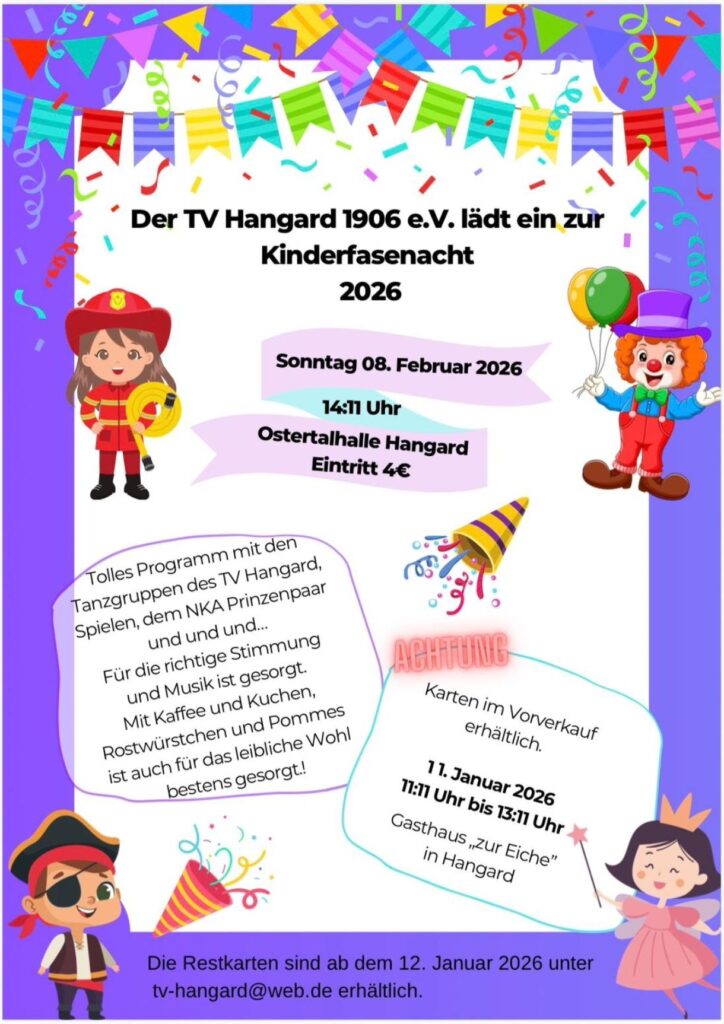 Die Hangarder Brunnebutzer haben zusammen mit dem TVH wieder ein munteres und vielfältiges Programm vorbereitet!